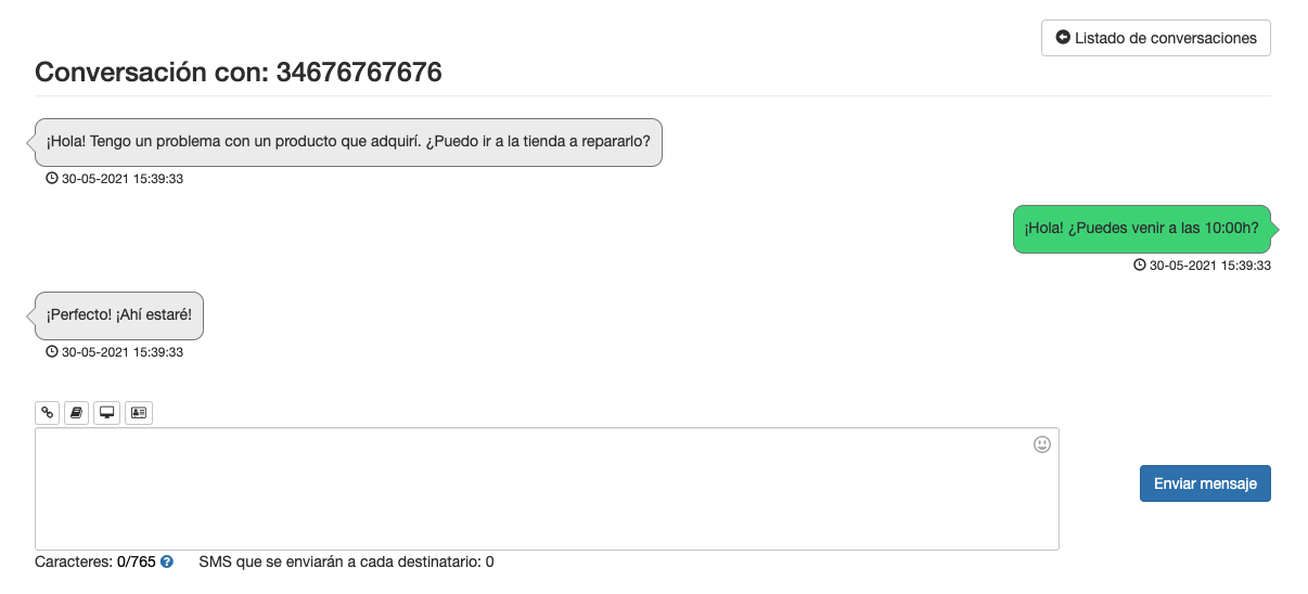 Dirígete al listado de conversaciones para poder leer los mensajes recibidos y ver si has recibido nuevos SMS de tus destinatarios.