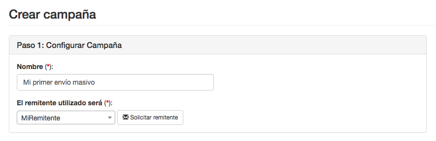 Dependiendo si tienes activada la opción de Validación automática de remitente podrás crear un remitente o solicitar un remitente nuevo si lo necesitas.