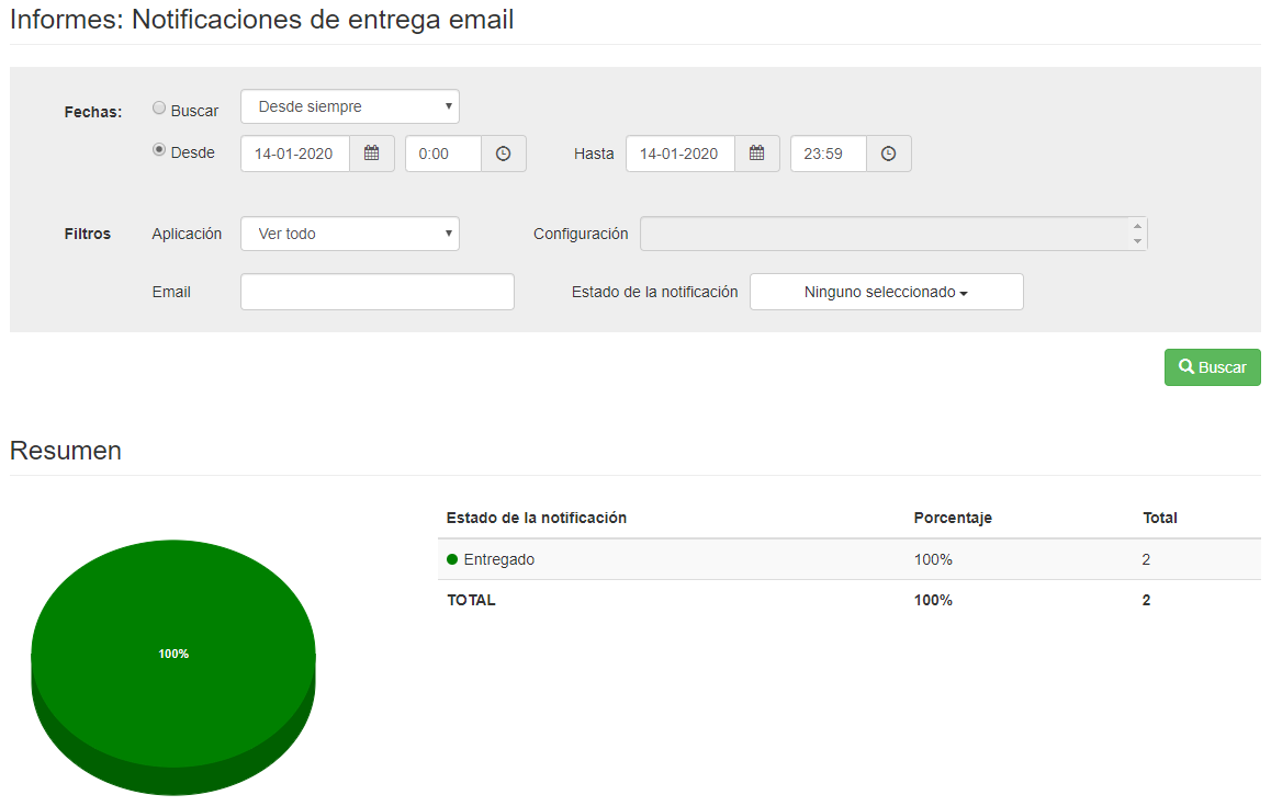 Podrás consultar las notificaciones de entrega y utilizar los siguientes filtros de búsqueda: